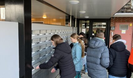 Derdeklassers van meneer Haasnoot schreven in de laatste week voor Kerst een Duitse kerstkaart voor buurtbewoners. Met een korte introductie, een wens en een Bijbeltekst brachten ze taal en burgerschap samen. In de laatste les bezorgden ze de kaarten zelf.