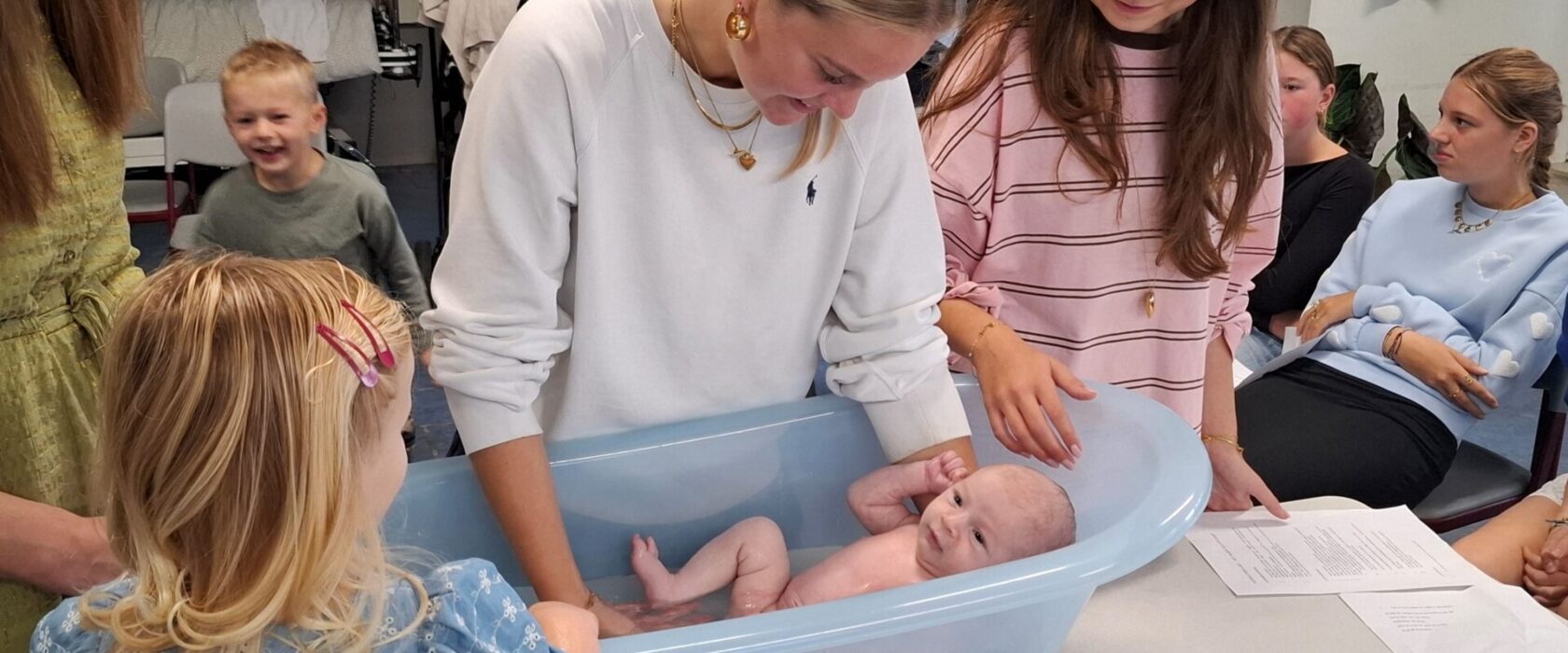 Bij vmbo zorg en welzijn werd een baby in bad gedaan. Daarna zijn er diverse soorten geboortetraktaties gemaakt door de leerlingen.