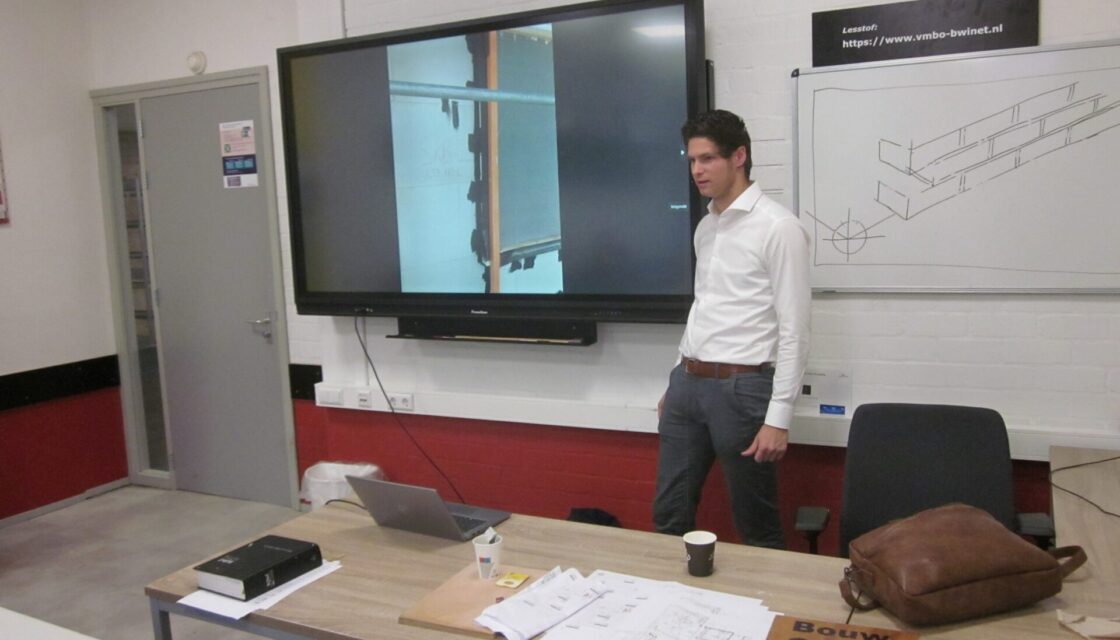 Met klas 3 brachten we een bezoek aan een bouwplaats in Gouda van De Vries en Verburg. De rondleiding werd verzorgd door de uitvoerder — een oud-leerling van onze school. Inmiddels werkt hij al zo’n vijftien jaar in de bouw, maar ooit zat hij zelf nog als kaderleerling bij ons in de klas.